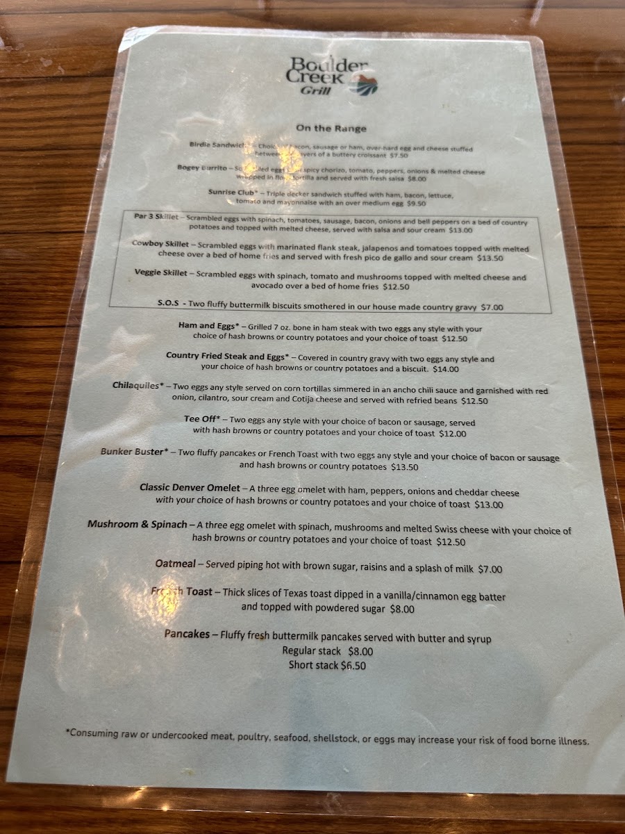 The menu at Boulder Creek Grill offers a diverse range of dishes, ensuring there's something for every palate. For appetizers, guests can enjoy Chicken Wings, Bang Bang Shrimp, and Chicken Tenders or go for a more shareable option like Chicken Quesadilla and Nachos. When it comes to burgers, options like the Traditional Cheeseburger, Western Burger, and California Burger stand out, alongside unique choices like the Mushroom Burger and Ortega Burger. The salads are also a highlight, with choices like the refreshing Seared Ahi Tuna Salad, Chicken Caesar Salad, and hearty Classic Cobb Salad, along with the Spinach Salad and Southwest Salad for those craving something lighter. For those looking for sandwiches, the Cuban Press, Rachel, and Reuben are great options, while the Chicken Ciabatta and Club Croissant are perfect for a more substantial bite. Breakfast offerings include favorites like the Birdie Sandwich, Bogey Burrito, and Sunrise Club, along with classic choices like Ham & Eggs. Boulder Creek Grill's signature Par 3 Skillet, Cowboy Skillet, and Veggie Skillet offer heartier options, while the Chilaquiles and Country Fried Steak & Eggs round out the BC Specialties section. For sides, guests can choose from crispy French Fries, Sweet Potato Fries, or Onion Rings, and lighter options like Sliced Tomatoes. With such a broad menu, Boulder Creek Grill caters to all tastes, providing a satisfying experience whether you're in the mood for breakfast, a burger, or something more refined.